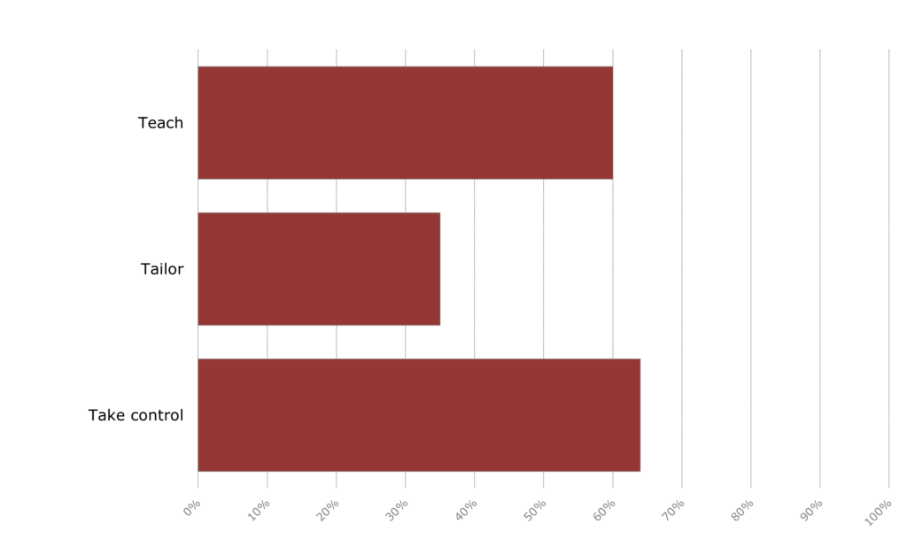i hver af de 3 salgs processer: Teach, Tailor og Take control: